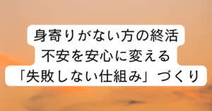 身寄りがない方の終活|不安を安心に変える「失敗しない仕組み」づくり