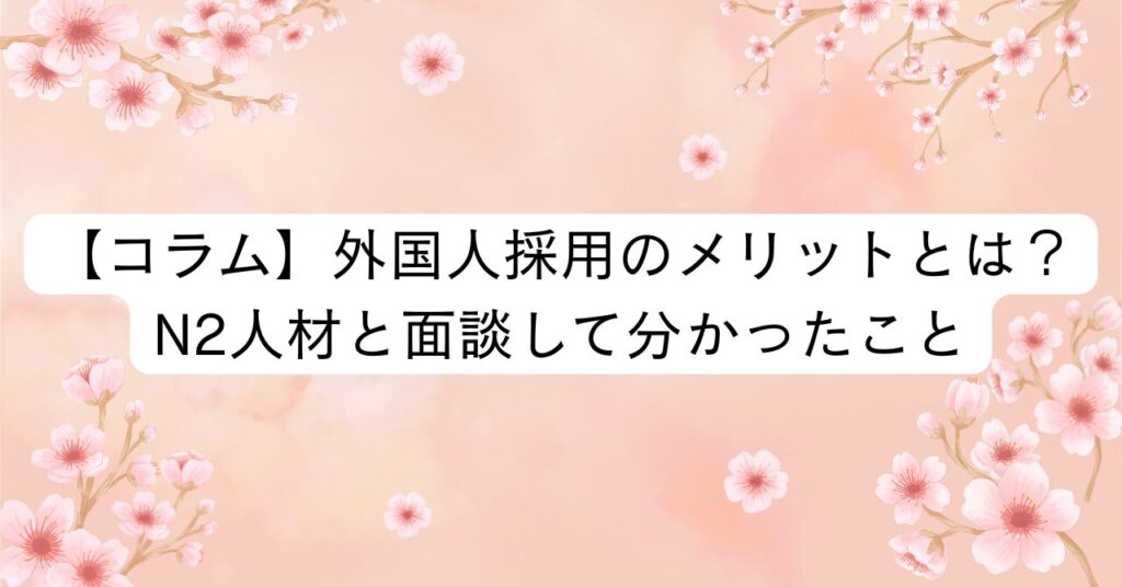 【コラム】外国人採用のメリットとは?N2人材と面談して分かったこと