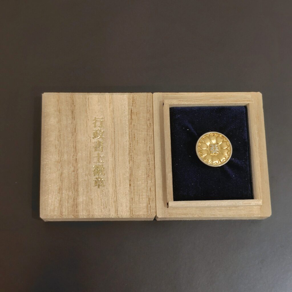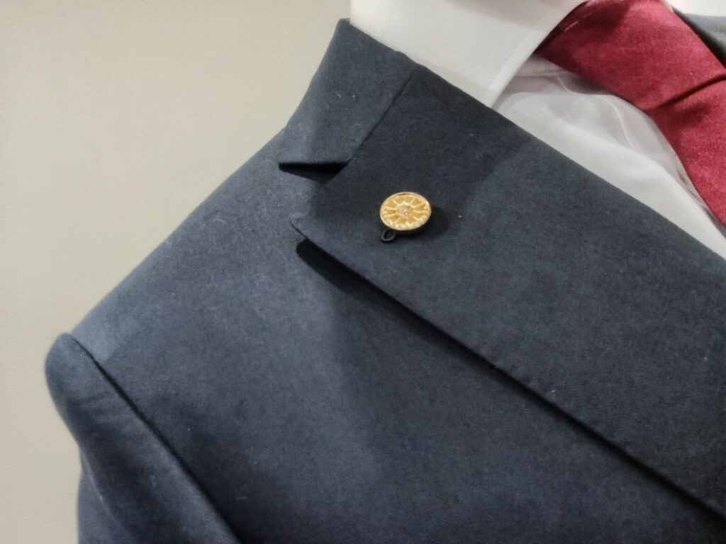 実は、こうしたバッジを襟元に身に着けるのは初めての経験です。 鏡の前では少しの気恥ずかしさもありますが、襟元にその重みを感じると、士業として身の引き締まる思いです。