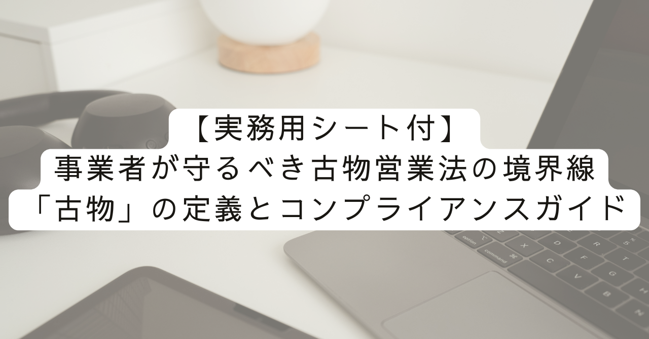 法令違反は、罰則だけでなく「企業の社会的信用」を失墜させる大きなリスクとなります。本記事では、事業者が遵守すべき「古物」の定義と、実務上の判断基準について解説します。